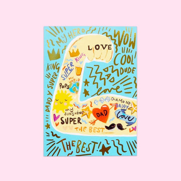 This fun and quirky Father's Day card, featuring a tattoo-adorned arm, is perfect for those dads who are super cool, strong and fashionable. The design is full of joy and colour, and finished with lovely gold foiling to make it pop.