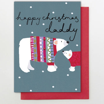 Happy Christmas Daddy. Let Dad know how much you care with this super cute hand finished polar bear card. This family christmas card is blank inside, printed on luxury card and comes with a red envelope.