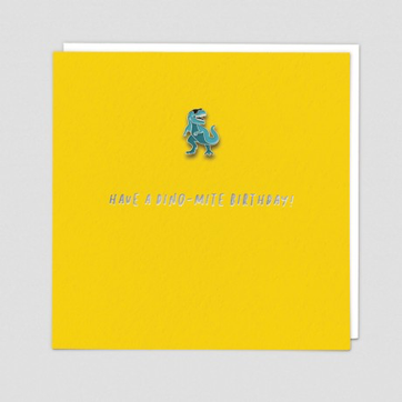 Have a Dino-Mite Birthday with this nifty Dinosaur pin badge card! Left blank for your message. This card comes with a rubber backed pin badge and a white envelope.