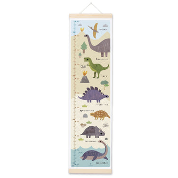 A vibrant and playful dinosaur-themed height chart, the ideal addition to any child's bedroom.