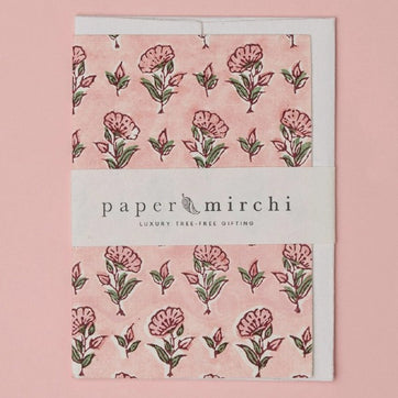 A beautifully made luxury greeting card, hand block printed by skilled artisans on tree-free paper. No two cards are ever the same, making them truly unique. Paired with a matching peel-and-seal envelope, lined with coordinating print for an elegant finishing touch.