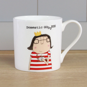 Let your morning brew or cup of joe bring you a smile with this fun bone china mug featuring a charming illustration from Rosie Made A Thing. Perfect for Mother's day, Mum's birthday, or simply for anyone worthy of the title 'domestic goddess'.