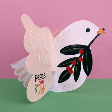 Send someone a perfect Christmas message in the perfect Christmas card this year, with this fantastic card featuring a white dove. When unfolded this card becomes a delightful free-standing scene (sure to stand out on the mantlepiece!).