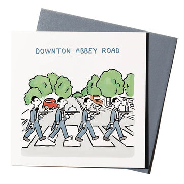 'Downton Abbey Road' is a funny greeting card featuring a visual pun, which is a mash-up of Downton Abbey and The Beatle's iconic Abbey Road album cover, by cartoonist John Atkinson. Very niche but absolutely perfect for someone who is a fan of both!