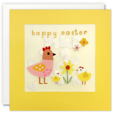 Happy Easter. Send some joy with an adorable paper confetti filled shakable card that features a heartwarming illustration of fluffy Easter chicks. This bright and fresh Easter card is printed on card from sustainable forests, is blank inside and comes with a quality white envelope.