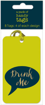 8 handy tags with ribbon ties. Packed in a cello, 4 each of 2 designs. Gold foil blocked.