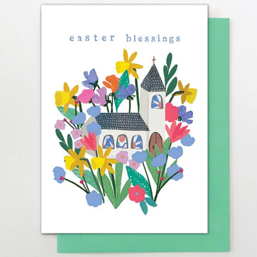 Easter Blessings. Send someone special an Easter blessing with this floral church Easter card. This card is printed on luxury, forest friendly card, is blank inside and comes with a quality green envelope.