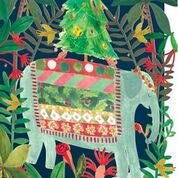 This colorfully decorated elephant is the perfect holiday spirit card for the festive season. This lazer cut masterpiece features bright colors and a pine tree.