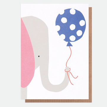 This sweet card features a neon illustration of a cute elephant holding a balloon. The perfect party animal!