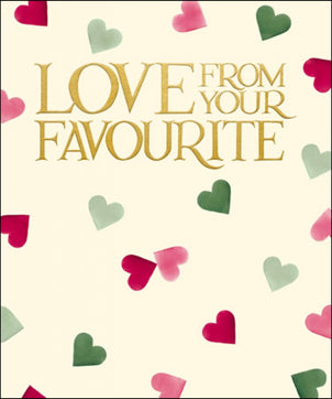 If you're not the favourite before you send this card, you might be afterwards! Featuring delicate watercolour hearts, from the piantbrush of Emma Bridgewater, this stylish card is embossed with gold foil text.