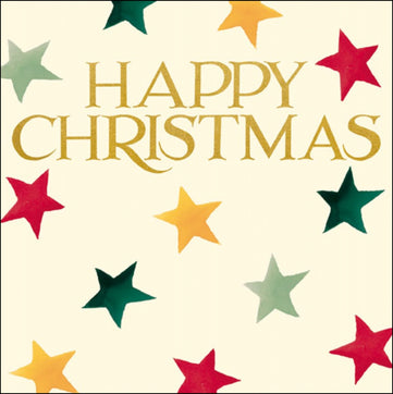 A simple, but classic, Christmas card with lovely colourful stars designed by Emma Bridgewater. This card has gold foiling, has been left blank for your own message, and comes with an envelope ready for sending.