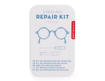 Make sure you always see clearly with this handy pocketsized eyeglass repair kit! The kit includes Flat head screwdriver, 1 pair of tweezers, 2 nose pads, 2 Frame grips, 4 Screws, 1 Magnifying glass, 1 Philips-head screwdriver, 1 Microfiber cloth.