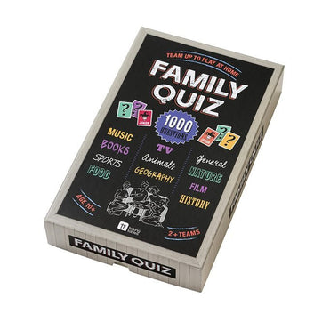 This fun quiz game covers a variety of topics including food, music, geography, and general knowledge. You can involve as many teams as you want - so the whole family can get involved! The box contains 100 quiz cards, answer pad, rules of play, wipeable scoreboard poster, one calk, and a winner's card trophy.