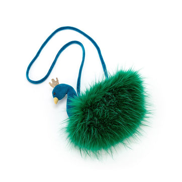 This chic peacock, with her curled teal neck and golden crown will keep all your belongings safe and keep you fabulous. Sashay away knowing all eyes are on that incredible green fluff!