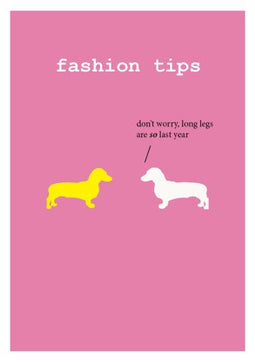 A fun greetings card with a humourous twist, featuring Frankie the sausage dog.