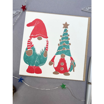 This funky letterpress card from Penguin Ink will be sure to get your loved ones in the holiday spirit! We love gonks, with their big, bushy beards and little button noses - and these two festive fellows are prepped and ready for the holiday season, with their Christmas tree hat and ribbon-wrapped gift, printed in festive holly berry red, fir tree green, and metallic bronze.