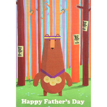 Happy Father's Day. This medal wining bear Father's Day card is sure to win your dad's affection. The card is blank inside and comes with a cream envelope.