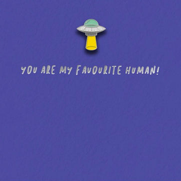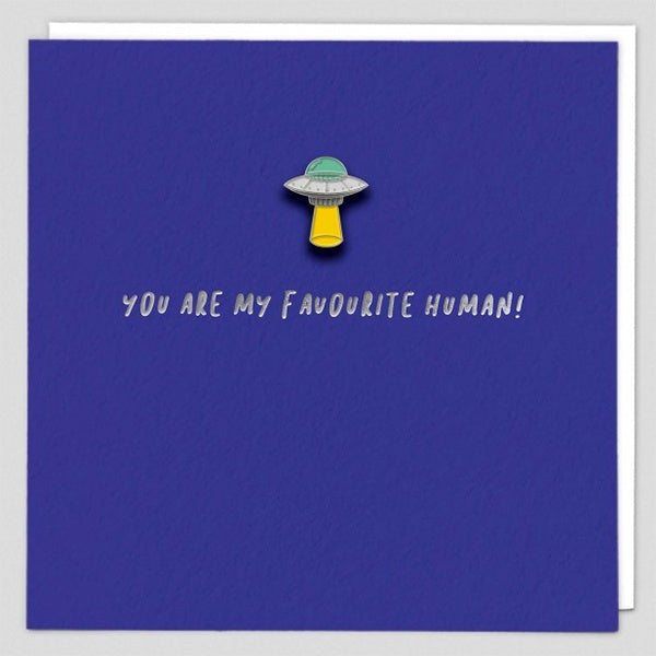 You are my favourite human. This our of this world Valentine's card comes with an enamel pin, is blank inside, and comes with a quality envelope.