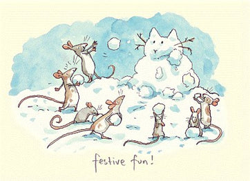 A cute and quirky Christmas card which has been illustrated by Anita Jeram for Two Bad Mice. Anita Jeram is well known for illustrating the classic children's book 'Guess How Much I Love You'. This card has been left blank inside for a personal greeting and comes with a green envelope and matching address label.