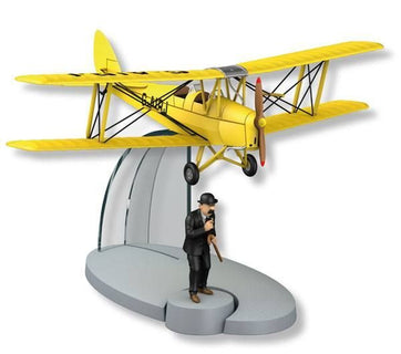 The Acrobatic Yellow Biplane plane, well it becomes one when the bungling detectives commandeer it, and the poor mechanic who was working on it! Look no hands! Do read more in the adventure The Black Island.