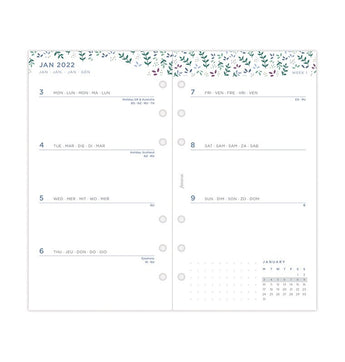 Plan ahead for 2022 with this pretty refill from the Filofax Garden range. This personal refill offers a horizontal week to view layout with a green botanical design.