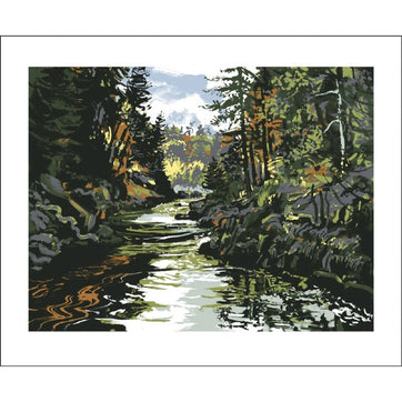 With a gorgeous painted design of a lush forest and sparkling river, this card is perfect to send some words of greeting and love.
