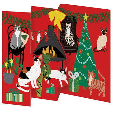 This trifold notecard of cats at a fireside at Christmas illustrated by Anne Bentley is the perfect Christmas card for any cat lover.