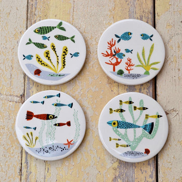 This colourful under the sea collection of ceramic coasters stems from Bristol based designer Hannah Turner's love of vintage 50s china. Nicely presented in a gift box, these foam backed coasters come in a set of 4, ready to inject some fun to any table!