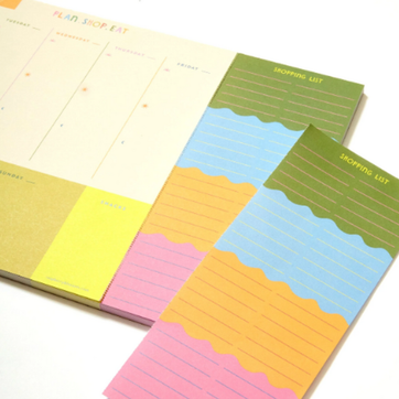 This bright weekly food planner with a magnet, ready to attach to your fridge, is super handy. It has 52 colourful pages and is kitted out with a perforated shopping list, so you can plan your weekly meals and then tear the list off, right before you head to the shops.