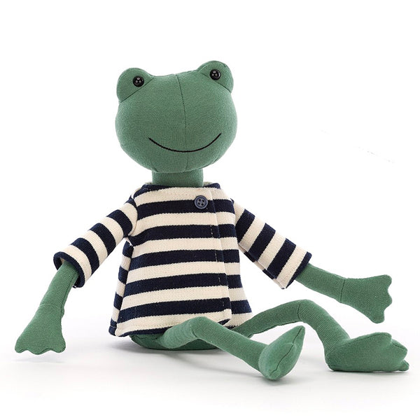 Effortlessly cool and always stylish, Jellycat Francisco Frog is a fashion enthusiast! Classic and elegant, Francisco only wears the best and is the fanciest frog in town! With a wide grin and long legs, this lean lad gives us a lesson in how to wear horizontal stripes!