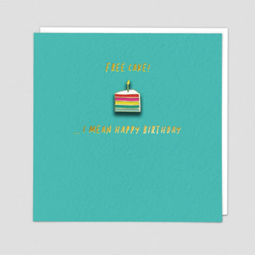 Featuring a colorful piece of birthday cake on a badge, this card comes with an enamel pin badge with a rubber backing, and has been left inside for your own message.
