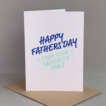 While he of course already knows, this Father's Day, drop a gentle hint that you know he knows who his favourite is with this letterpress card.