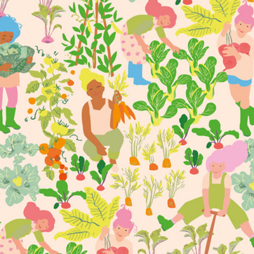 This gift wrap is a lovely design of some summery gardening in pastel hues; great for those green thumbs in your life.