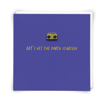Bring your boombox and let's get the party started! This fantastic card is blank inside for your message and comes with a boombox enamel pin that can be used to brighten up clothes, bags, and more!