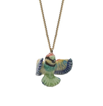 A bright and tiny Bee Eater charm - handpainted porcelain from And Mary. This pendant comes on an extendable 18"/22" gold plated chain.