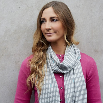 This gorgeous soft scarf from Earth Squared comes in a subtle grey shade with a lovely oval pattern.