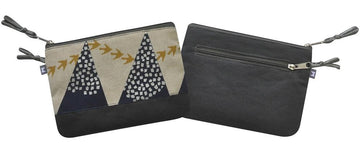 This lovely purse from Earth Squared features a beautiful screenprint patchwork design with yellow birds and a grey base. With two zip closure pockets.