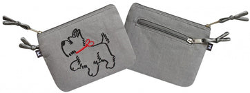 These sweet purses from Earth Squared are the perfect gift for a dog lover! This design features a lovely embroidered scottie dog on grey fabric.