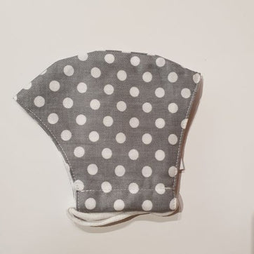 This fashionable fair trade cloth face covering with a grey and white polka dot pattern allows you to go about your daily life while offering some protection against transmission of viruses to other people in close proximity.