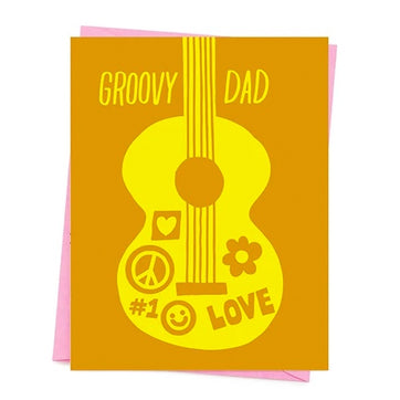 This groovy guitar, illustrated by Ashkahn, will hit the right note with Dad. This Father's Day card is printed with a 1962 Heidelberg Windmill Platen and comes with a quality pink envelope.