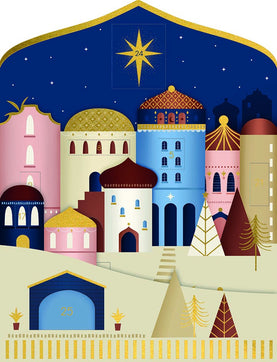This delightful advent calendar features an illustration of Jerusalem with the guiding star in the sky above. With a surprise behind each door, it's the perfect way to count down to Christmas!