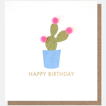 If age is a prickly subject then this is the birthday card to give. This gold foiled coloured pom pom adorned cactus card is blank inside and comes with a quality kraft envelope.