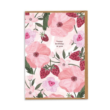 This lovely card with shades of pink and red is adorned with a gorgeous illustration of some fruit blossoms; perfect for sending a loving message to someone on their birthday.