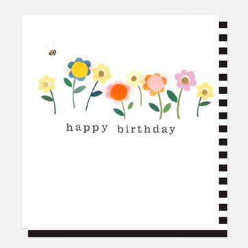 This fun floral birthday card features gold foiled elements as well as mini pom-poms for that extra special touch.