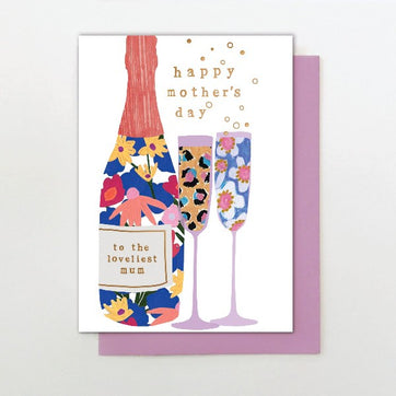 Celebrate Mum with this fun card featuring a gorgeous illustration of some bubbling champagne. With gorgeous florals and raised foil detailing, this is sure to make her smile on Mother's Day.