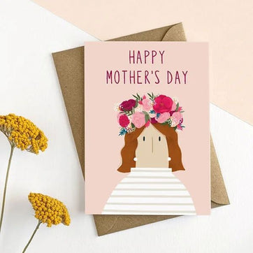 Simple yet full of character, this Mother's Day card will make Mum smile. Featuring a funky lady wearing a beautiful flower crown and the message 'Happy Mother's Day' above.