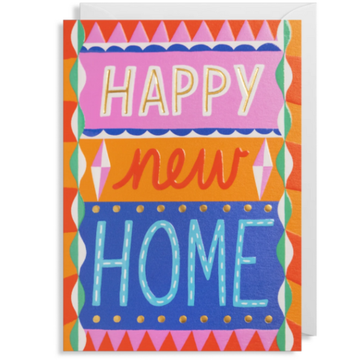 This is a funky, bold card featuring bright colours and eye-catching patterns making it perfect to decorate their new mantel.