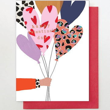 Happy Valentine's Day. Give someone special a lift on Valentine's Day with this bright and colourful balloons illustration. This gold foil valentines card is blank inside, is printed on Forest Friendly approved card and comes with a quality red envelope.