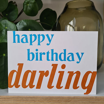 The design is printed on an original Heidelberg press using 270gsm card. The arctic blue ink gives a smart and stylish contrast with the tiger orange on the crisp alabaster card. The typefaces are original pieces from the Print Works, and they show the signs of decades of use, making each card unique. This card uses 'DeVinne' and 'Old Style Italic' vintage typefaces.