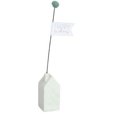 Carefully made from porcelain, featuring a wire with 'happy birthday' enscribed on paper.